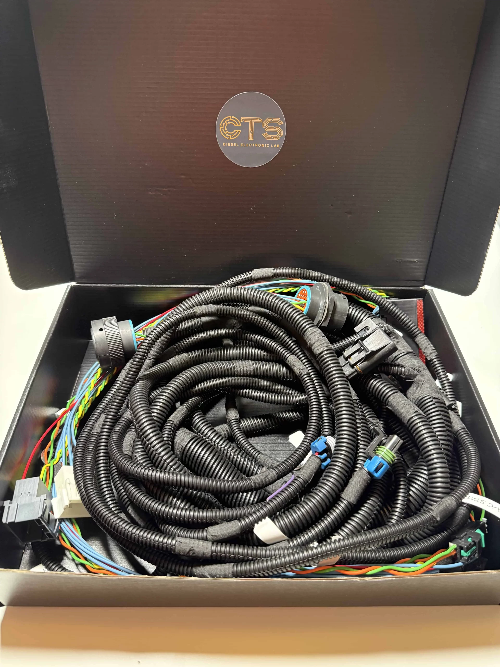 Este arnés de adaptación está diseñado por CTS para instalar motores Detroit Serie 60 14L DDEC V en Freightliner Cascadia, manteniendo comunicación completa y confiable entre motor y cabina.